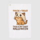 kitty wearing a mask ready for his first Halloween Golf Towel