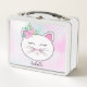 Kitty With Pink Butterfly Personalised Metal Lunch Box