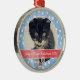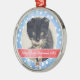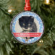 This ornament is perfect for your cat's first Christmas with a spot to put your kitty's name and the year on a light blue snowy background with a picture of Rudolph the red-nosed reindeer at the bottom.