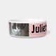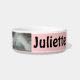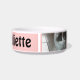 A pink background, two different photos and the cat's name. A pretty and personalised bowl for your dear little fury friend.