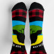 Rustic fun Christmas socks featuring iconic Kiwi bird from New Zealand in fantasy islands creation surrounded by red and black buffalo plaid. Customise or delete text or change background colour. Premium Sustainable or Athletic socks for real Kiwis!