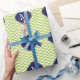 Kiwi Green & Blue Zigzags Pattern Monogram Wrapping Paper