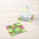 Kiwi on pink cocktail napkin neon green and pink square paper coaster