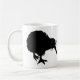 Black and white silhouette shapes of the New Zealand kiwi bird.