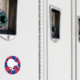The white shape of a kiwi bird against a blue and red design. Red, white, and blue are the colours of New Zealand's flag.