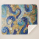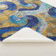 A dynamic interplay of swirling blues and invigorating yellows captivates the eye. The composition feels like an abstract representation of a starry night merged with oceanic waves. Intricate patterns add depth, while splashes of red provide a focal contrast.
