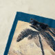 Vintage Pinup Blonde Bikini Model kneeling at the edge of the sand as waves splash her, to customise