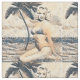 Vintage Pinup Blonde Bikini Model kneeling at the edge of the sand as waves splash her, to customise