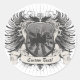 Beautiful Knight Crest heraldry gifts with wing background and elegant scrolls! Knight on horseback in the centre of the shield! Edit the text on the banner, change the font style, colour and size! Create the perfect personal or family crest by editing the text on these Knight crest heraldry gifts!