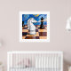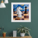 A bold and striking chess poster featuring the legendary knight fork tactic, where the knight simultaneously threatens the queen. Perfect for chess lovers, strategists, and players who admire the beauty of tactical play. Great wall art for home, office, or a chess club.