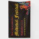 Mediaeval Festival or Renaissance Fair type event banner with your custom information. Antique fonts and a colourful vintage image of a knight on a horse are on a black background. Edit the text for your event.