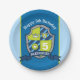 Boys knights mediaeval shield birthday party disposable party paper plates. Personalise with your own birthday boys name and age. Currently reads Happy 5th Birthday Alexander. Ideal for childrens knight and maidens birthday parties. Matches other items in the knight shield mediaeval party blue, green and grey range. Original art and design by Sarah Trett. www.sarahtrett.com for www.mylittleeden.com