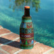 This original bottle cooler design has a festive Christmas holiday theme with a pattern made to resemble a knitted sweater. It includes reindeer, trees, mountains, snowmen, mistletoe, snowflakes, birds and more. The colours are all pretty shades of red, green, blue and golden yellow.