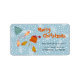 Merry Christmas address labels. Warm and cosy winter illustration with knitted hats and mittens, white branches and snow on blue background.