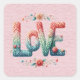 Knitted LOVE Word Blue to Pink Gradient Square Sticker