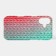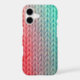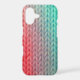 The vibrant knitted pattern displays a bold gradient from vermillion red to aqua blue, highlighting the intricate stitches