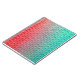 The vibrant knitted pattern displays a bold gradient from vermillion red to aqua blue, highlighting the intricate stitches