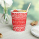 For some holiday fun, this paper cup has an 'Ugly Christmas Sweater' cross stitch pattern that features big snowflakes and the text 'Christmas'. Search ID208 to see additional products with this design and more cross stitch patterns.