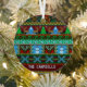 This festive double-sided holiday ornament is the perfect way to personalise your Christmas tree. The original, repeating pattern is made to resemble a knitted Ugly Christmas Sweater design. The cute pattern includes reindeer, trees, mountains, snowmen, mistletoe, snowflakes, birds and more. The colours are all pretty shades of red, green, blue and golden yellow.