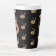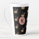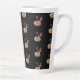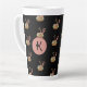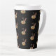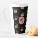 Knitting mug with basket of yarn pattern. Black mug, for coffee or tea, and a place for a monogram initial.