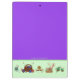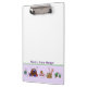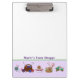 Office clipboard with a knitting theme and design. Customize one line of text near the bottom. A light purple border has yarn and knitting needles and the remainder of the clipboard is white. Design continues onto the back.