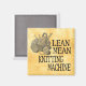 "Lean Mean Knitting Machine" - a funny saying for knitters with graphics showing a basket with wool and knitting needles. Knitting humour for knit wits!