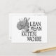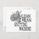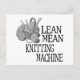 "Lean Mean Knitting Machine" - a funny saying for knitters with graphics showing a basket with wool and knitting needles. Knitting humour for knit wits!