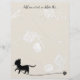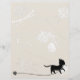 Scrapbook and craft paper with a knitting theme. Light tan colour with all over pattern of knitting needles and yarn. A black cat pulls a strand of yarn from a ball at the bottom of both sides. Black text at the top can hold a title or other text, which aligns to the top of the page. Wording can also be deleted. Use in scrapbooking or for other fibre arts and crafts.