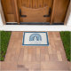 Spring is knocking on the door & summer is around the corner, time to spruce up the porch or deck. This doormat uses coastal blue colours with a boho-style rainbow. The scripture Luke 11:9, "knock, and it will be opened to you" is used to welcome guests. Customise with a family name for yourself or as a housewarming/wedding gift.