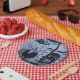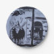 The scared little knome on this cool halloween paper plate is being boiled over a glowing fire for a witches brew in her witches pot. This an original and unique, ink drawing. In the background of this little illustration is a witches hat hanging on the wall and a glowing fire. The originality of this fun halloween character really stands it's very different from any other halloween picture. This plate has a customisable text so you can personalise it with your own text.