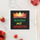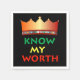 Napkins with the words "Know My Worth" in African colours, with a golden crown at the top.