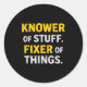 Knower Of Stuff. Fixer Of Things. Funny Gift For F Classic Round Sticker
