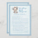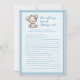 Adorable brown and blue baby bear for a boy's baby shower. Who Knows Mummy Best? baby shower game. Blue blanket with blue stitched edge border for background. Templates provided on back.