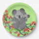 Koala and baby joey, sum leaves and eucalyptus blossoms paper plates.