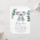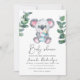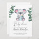 We can bearly wait baby shower invitation. Cute watercolor little koala bear with bottle of milk and branch eucalyptus. Matching items available.