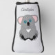 This koala design golf club head cover is an accessory that you slide over the head of a golf club for protection against knocks whilst sitting in your golf bag. Made out of polyester, cotton, and marine vinyl with a choice of different piping colours. You can customise this golf club head cover with any text. Should you require any help with customising then contact us through the message link on this page. Koala bear design golf club head cover.