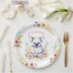 A cute koala bear sitting in pink flowers girl's personalised it's a girl baby shower paper plates.