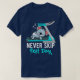 I give wanted to give this a 4 instead of a 5 because these Basic DARK T0shirts run unexpectedly SLIM or Narrow. Which is great if you do not have a potbelly, but I have a paunch. It isn't the shirt's fault that I've got a beer belly. The design and shirt itself is a quality cotton shirt. The color is more of a deep purple, but still a very pretty color. The Basic DARK T-shirts run a bit SLIMMER than the Basic Ts. The neck is a fraction narrower (or seems to be narrower) also. I'm a paunchy middle-aged woman and my neck is 12 inches (31cm) thick and the neckline fell about the same as in the photo of the man, and I had the desire to tug it a bit. So if you're a thick necked man or like loose shirts, be aware these are slimmer shirts. Once I get rid of my lockdown paunch it'll look great. The shirt washed well in cold water with no apparent bleeding. We don't have a dryer, so it hung dry. Did not shrink. Love the colors and the design. The design looks smaller on my shirt than it does on the model on-line. But still, it looks good on the shirt. The printing looks as it does on the model, just the size seems fractionally smaller. Washed garment in cold water, hung dry and design appeared unaffected.