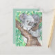 Koala in Eucalyptus Tree postcard from original watercolor and mixed media painting. This adorable Koala perched amongst the soothing cool green leaves makes beautiful way to stay in touch with friends and also makes great wall art