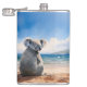 Koala on sandy beach hip flask