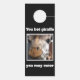 This double-sided door hanger features two hilarious animal puns. The "do not disturb" side features a photograph of a koala along with the text "I need some koala-ty sleep". The "come in" side features a photograph of a giraffe along with the text "you bed giraffe you may enter".