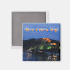 Refrigerator magnet pictures a nighttime scene in Koblenz, Germany.