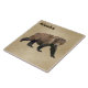 Features a digital painting of a Kodiak Bear on a neutral parchment, or old paper, background. Text reading "Alaska" also appears. The Kodiak Bear (Ursus arctos middendorffi), a subspecies of the brown, or grizzly, bear are the world's largest bears. A full grown male can be over ten feet tall when upright on his hind legs and weigh over 1500 pounds - truly a sight to behold. One bear in the Bismarck, North Dakota zoo was estimated to have weighed as much as 2400 pounds. The bears live on the islands of Alaska's Kodiak Archipelago. Today there are approximately 3500 Kodiak bears and their numbers are increasing due to the generally excellent condition of their habitat including sufficient fist to eat. They are called "takuka-aq" in Alutiiq, the language of the people's native to that area. The bears are believed to have been isolated there since towards the end of the last Ice Age over 12,000 years ago. Though they are the largest terrestrial carnivore their diet includes large amounts of grass, other plants and berries. Today there are approximately 3500 Kodiak bears and their numbers are increasing due to the generally excellent condition of their habitat including sufficient fish to eat. Due to the abundance of food resources Kodiak bears have smaller home ranges than any other brown bears and have no need to defend territories. The Alutiiq people hunted bears for food, clothing and tools. Arrows, spears, and a great deal of courage were required hunting equipment. Bear heads were usually left in the field as a sign of respect to the spirit of the bears.