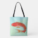 Pretty all over printed tote, with a lovely illustration of a golden orange Koi fish against a blue green background. Customise to add your own text.