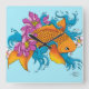 Koi Fish Lotus Cherry Blossoms Square Wall Clock