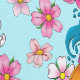 Koi fish with lotus flowers and cherry blossoms all in a backdrop of water