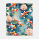 A seamless watercolor pattern featuring elegant koi fish swimming among blooming lotus flowers in a tranquil pond.