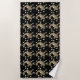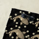 A gold oriental style koi fish, surrounded with gold flowers on a black coloured background.