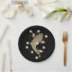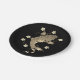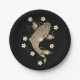 A gold oriental style koi fish, surrounded with gold flowers on a black coloured background.