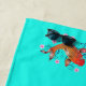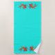 Turquoise/aqua beach towel embellished with oriental style orange koi fish surrounded by tiny pink flowers. I offer the matching visor, tote, fliflops and phone case.